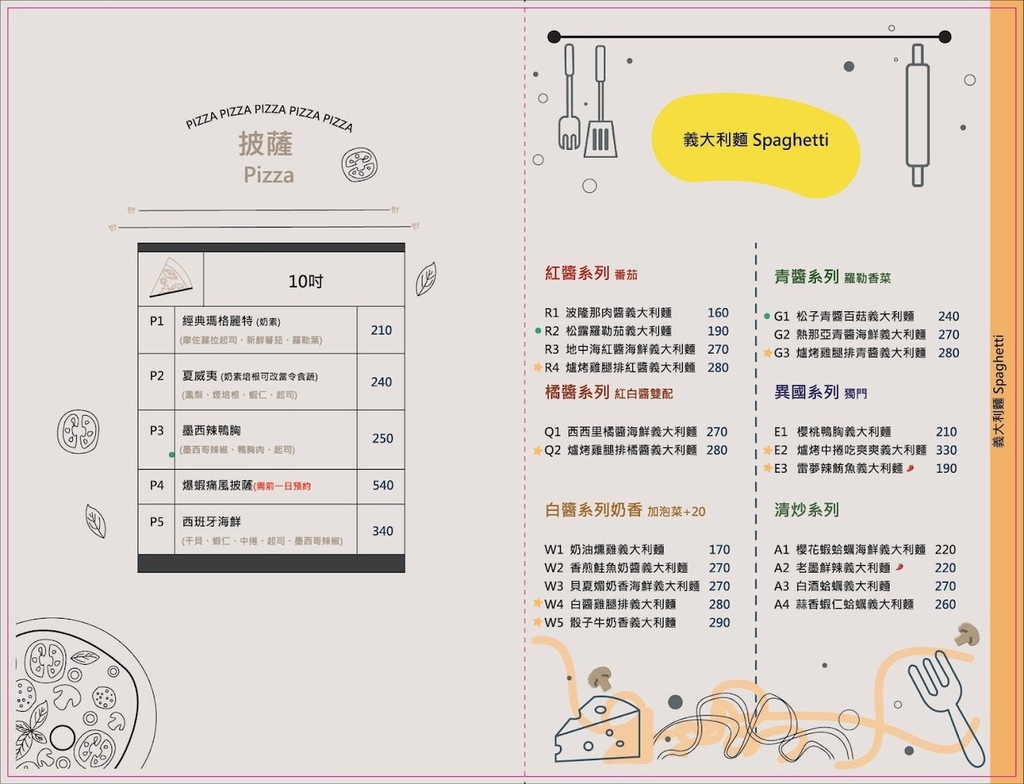 先附上 諾諾索義式料理菜單 (2025.2/8更新)。店門口露出的這些都是人氣招牌,不管是蛤蜊滿滿一大盤的義大利麵,還是蝦子鋪滿的PIZZA都超吸睛,身邊吃過的朋友也都推爆~