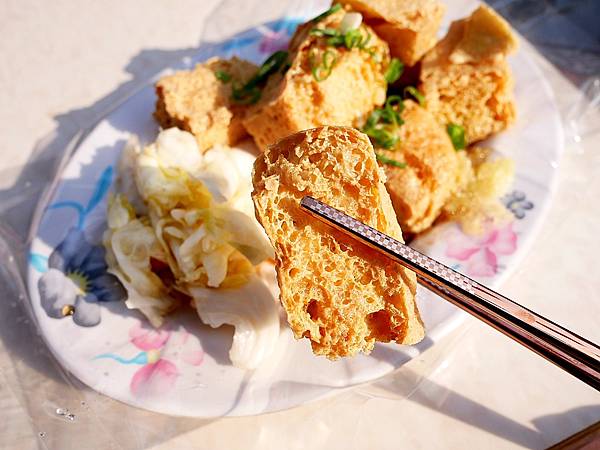 臭豆腐口感很酥,卡滋卡滋非常脆口,豆腐本身沒有含汁但不會太乾,吃起來臭味不夠過癮,整塊豆腐在酸酸甜甜的醬汁上滾一滾比較有味道,口感也更濕潤有加分。其中蔥蒜辣椒客製化添加,點餐時也會一併詢問。