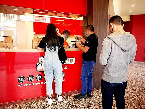 靜香去的當天生意超好,不只人潮絡繹不絕,一直有人開車前來,而且員工的手也完全沒停過,在網路上看到掛滿烤鴨的架子更是空空如也,聽說早上都賣光了,超誇張~ 本來想拍個掛滿烤鴨的壯觀場面跟大家分享,太可惜! 靜香有提前打電話預訂,畢竟單人餐每日限量,到現場我完全沒信心可以搶到,只見排在我後面點餐的客人,要等2個小時之後才有了,果然大家對於新店都很嚮往,特別又是在台灣擁有高人氣的烤鴨。