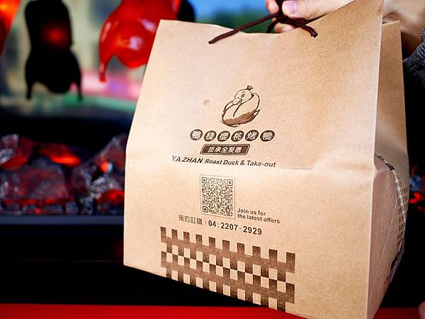鴨棧的外帶包裝好精緻,印製的紙袋包裝超可愛,拎著烤鴨意外很有質感。