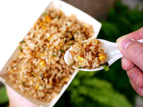「飯鋪炒飯」只有提供外頭的桌子讓顧客用餐,主要還是以外帶和外送為主,當天就看到外送員來來往往,明明不醒目但外送訂單的量卻不少。