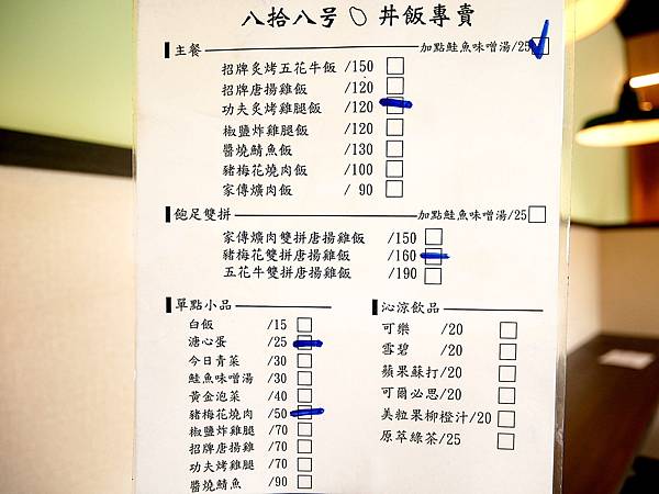 先附上菜單,八拾八号食堂的品項基本的選擇都有,其中比較特別的是台式爌肉飯,頭一次看到丼飯出現爌肉的選擇,如果食量大一點的朋友也有雙拼可以選。