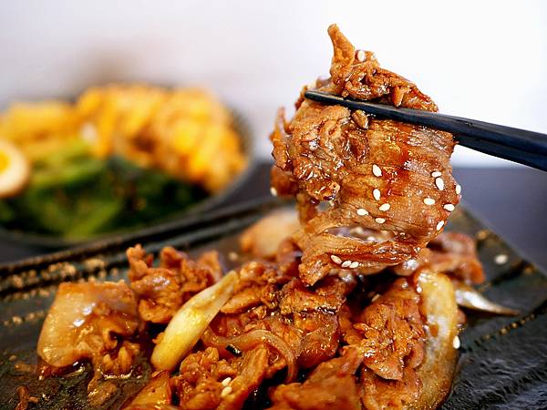 因為雙拼的梅花豬藏在下面,靜香直接拍單點的燒肉方便大家參考。梅花豬超下飯,肉片不乾柴又入味,照燒醬汁鹹度適中,還有洋蔥的甜味和脆度拌著飯一起吃超加分,看到GOOGLE有人說醬汁太鹹,我覺得拌著飯吃蠻剛好,特別喜歡燒肉醬的味道,每次去吃丼飯都會請老闆幫我多淋一點醬,這樣才過癮~