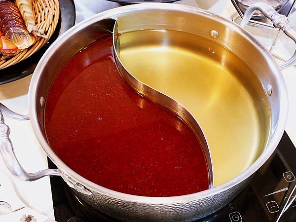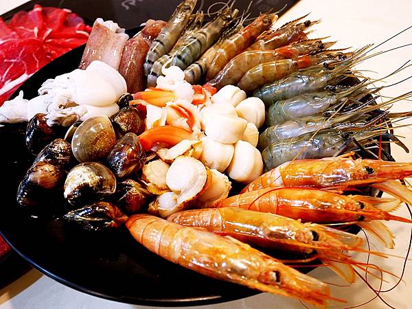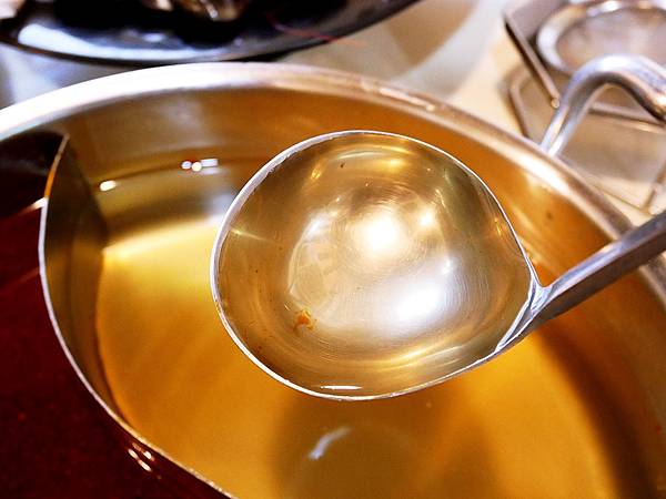 湯頭的部分採鴛鴦鍋模式,白湯紅湯各一。白湯的味道不重,涮煮完大量海鮮後變超鮮甜。紅湯帶有中藥香氣,湯底沒有放鴨血但可以另外點,雖然飽到天靈蓋還是點一份來嚐鮮,沒想到蠻好吃,千萬別錯過~麻辣湯濾掉辣油再享用,香辣但不會刺喉嚨,非常順口~