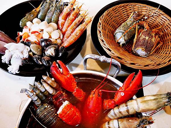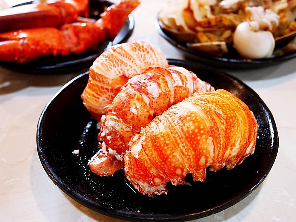 當天吃到其中三種龍蝦,包含黃金龍蝦、波士頓龍蝦和青龍龍蝦,龍蝦出餐時已經切開很好煮,不擔心烹煮速度趕不上吃的節奏。餐桌上都有提供剪刀,可以快速剪開龍蝦殼方便享用,如果你自詡是吃龍蝦的快手,一定要來挑戰看看時間內能嗑掉幾隻,我看每一桌的龍蝦殼都堆滿滿,幾乎滿出垃圾桶,真的狂~