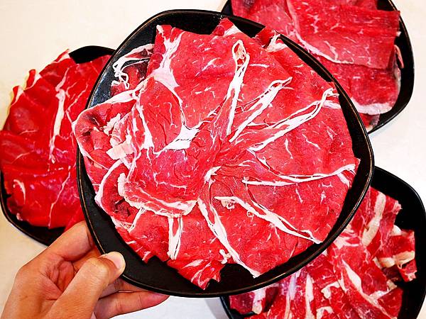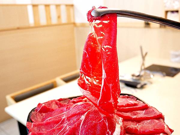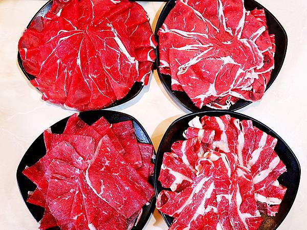 靜香跟男友當天挑戰4盤牛肉,分別是大家心心念念的M9黑毛和牛,以及Prime霜降牛、Choice肋眼和Choice無骨牛小排,不得不說和牛蠻好吃,涮煮完相當軟嫩而且甜度高,重點不是薄到透光的肉片,相當有存在感,光是用白湯涮煮,不用沾醬就好吃。