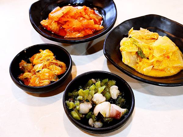 「印IN麻辣鍋放題」也有提供一些免烹煮的熟食,像是爽口的黃金泡菜、韓式泡菜,以及重口的麻辣鮮蛤和芥末章魚等等,麻辣鮮蛤辣度不低,醬汁帶有厚實中藥香,而芥末章魚的芥末味明顯但不會太嗆,章魚很彈牙還不錯。