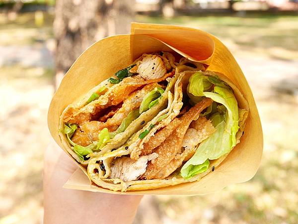 薄脆給不少塊,鹹脆卡滋很加分,搭配生菜、蛋、醬汁,以及大塊又細緻的雞肉還不賴,一份對切跟朋友分食都不嫌少,但我還是更愛硬面多一些,不過「艸家煎餅果子」的口味還不錯,偶爾想吃煎餅果子可以就近買。