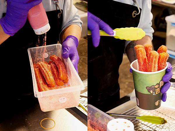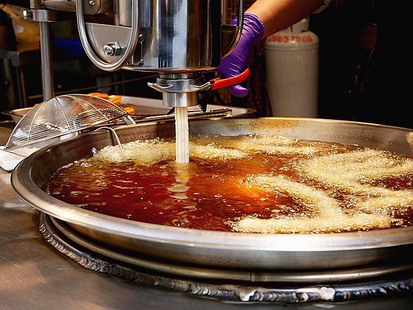所有吉拿棒都是現炸現裹粉,金黃色的吉拿棒在油鍋內滋滋作響超療癒,熱騰騰起鍋口感超棒,就算放涼依舊酥脆很涮嘴~