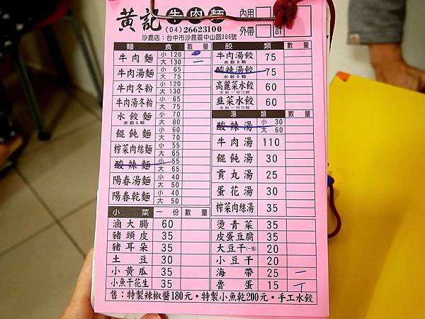 「黃記牛肉麵」雖然在大馬路上,但卻不醒目,不僅招牌大反光,還幾乎被旁邊的樹遮蔽住,如果沒有google只能是被外帶的人潮給吸引。一進到店內,就看到老闆娘包水餃的手沒停過,google上水餃的評價也不錯,找時間再來攻略