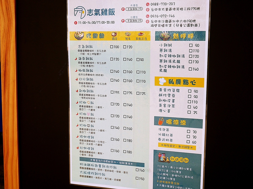 喜歡海南雞的朋友,有留意過德芳路上的「志氣雞飯」嗎? 靜香每次回大里才會走德芳路,但通常都比較晚,一直忽略內縮的「志氣雞飯」,沒想到店家人氣這麼高,經常11點開賣1點出頭就幾乎售罄,如果沒有提前打電話預訂,可是很容易撲空的唷~ 志氣雞飯販售多種異國餐盒,包含海南雞飯、口水雞、打拋豬、綠咖哩雞等等,品項豐富而且附餐相當多樣化,想吃嫩嫩的雞肉淋上香噴噴蔥油這一味嗎? 趕快一起往下看~