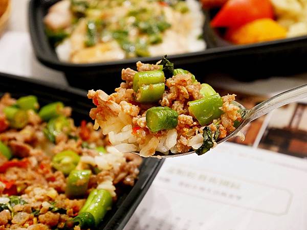 配菜種類相當豐富,色澤繽紛且不油膩,口感都蠻新鮮。裡面提供纖維、蛋白質、澱粉,配置均衡又能增加飽足感,份量很OK。