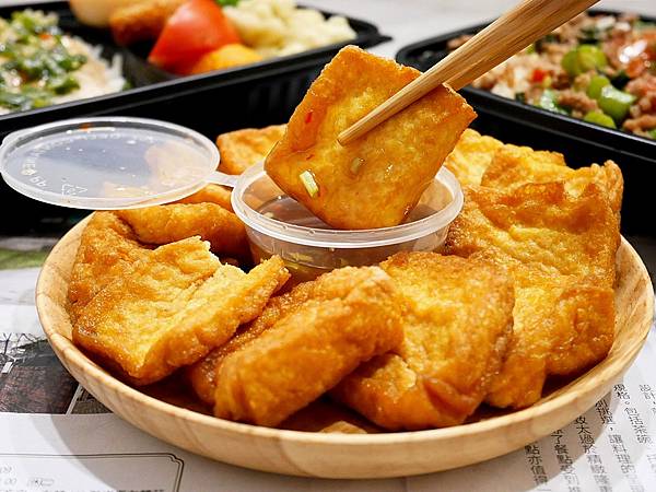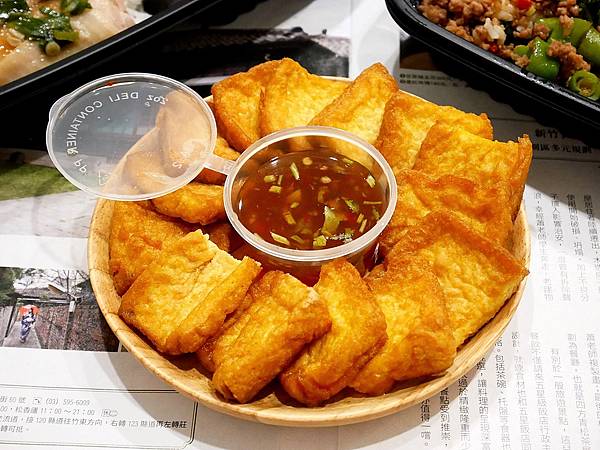這道點心千萬別錯過,它是用雞蛋豆腐炸到表面金黃份量也不少,即使帶回家才享用,表面完全不會乾,中間的豆腐口感細緻味道超棒,單吃就有豐富豆腐香,沾點酸甜辣風味兼具的醬汁更提味,如果醬汁的甜度再下降一點我會直接愛死,超喜歡尾韻麻麻的口感。