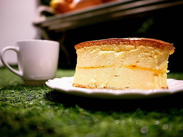 蛋糕中間相當綿密,入口能品嚐到濃濃蛋奶香,中間的起司和上頭的乳酪塊很加分,大大增添鹹香滋味,稍微加熱吃起來肯定更出色。