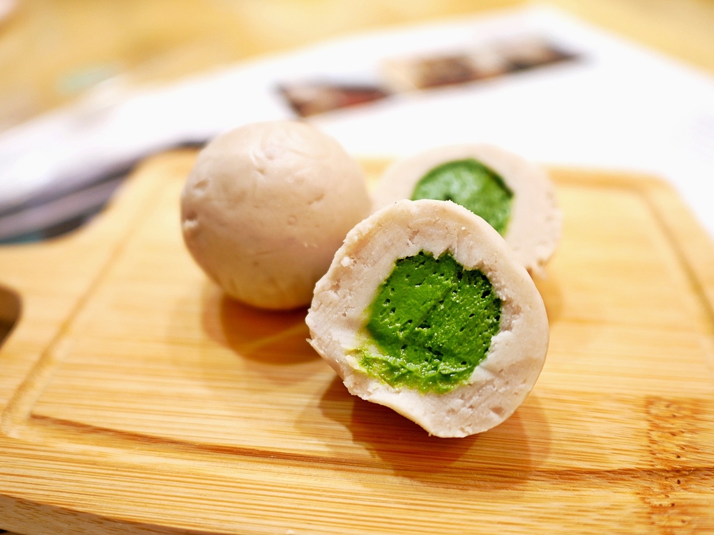 二訪吃到的芋泥球有部分芋頭塊搗不夠爛,如果追求純芋泥會覺得小小可惜,但芋泥本身還是超好吃。抹茶內餡超濃郁,是大人味抹茶我喜歡,微苦甜餘韻持久超迷人