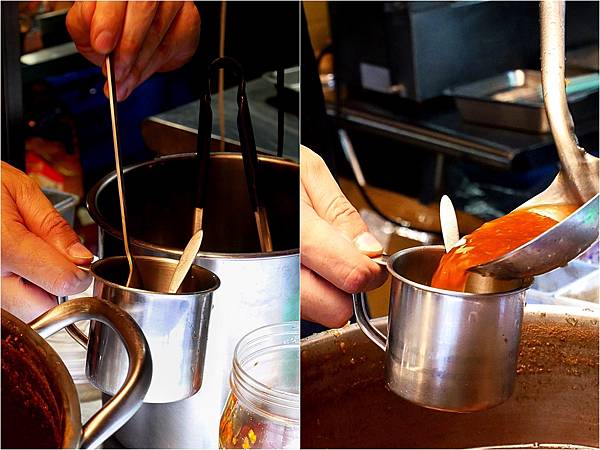 豆干開鍋的瞬間,熱騰騰還夾著滷汁香氣的白煙立刻冒出,光是站在旁邊都快流口水。只見老闆迅速夾起豆干切塊、裝碗並淋上蒜醬,動作一氣呵成,快到我忘了說要用保鮮盒裝,才趕快翻出容器請老闆把剩下的打包。