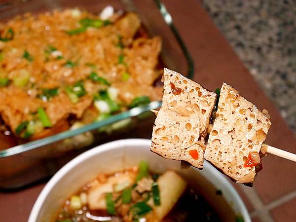 百頁軟Q好入口,滷到蠻入味會想一塊接一塊,雖然不像豆干咬下那麼濕潤,但依舊很涮嘴。