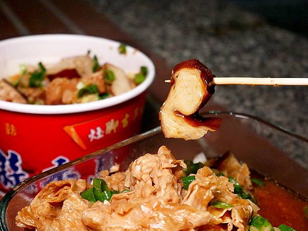 「灶腳古早味豆干」的蒜醬超夠味,光是拿著就能聞到濃濃蒜香,鹹度夠又不厚重,食材吸飽湯汁超下飯,大蒜控絕對會滿意! 強烈建議吃完豆干後湯汁不要倒掉,放一碗白飯進去拌很好吃,好想建議老闆加賣白飯,許願~