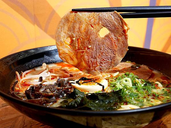 拉麵的配料很豐富,除了叉燒肉、溏心蛋,還有蔥花、海帶、豆芽及木耳。叉燒肉口感細緻不乾柴,肥瘦適中好入口,不只有調料的香氣更吸附麻辣湯頭很夠味。溏心蛋軟嫩濕潤超好入口我喜歡。