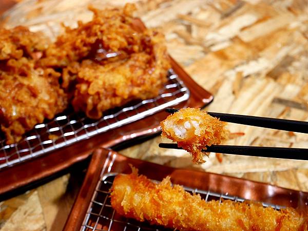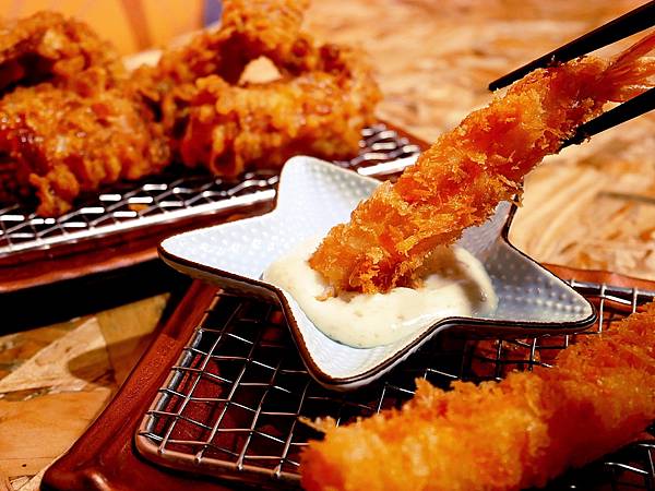 炸蝦的麵衣很薄脆,沒有為了視覺感而裹上厚厚粉漿,中間的蝦肉Q彈新鮮,而且油瀝得很乾相當耐吃,不用沾醬就美味我喜歡。