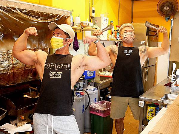 「DADDI 活力餐盒」主打各種增肌餐,兩位老闆本身就是健身選手,最初因為比賽自製增肌餐,後來發現健身好友群也有相同需求才開始販售餐點。兩位老闆都非常壯,重點是好身材不藏私,露出大肌肉料理超養眼,完全擔得起「猛男大主廚」的稱號。
