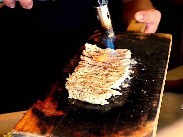 豬里肌的肉量也不少,炙燒後在表面上了點酥脆感很加分,舒肥過的豬肉口感細緻軟嫩相當好入口,調味不重主要靠上頭淋的味噌醬提味,沒想到兩者意外合拍,超絕配~