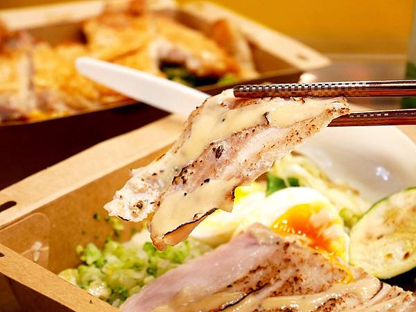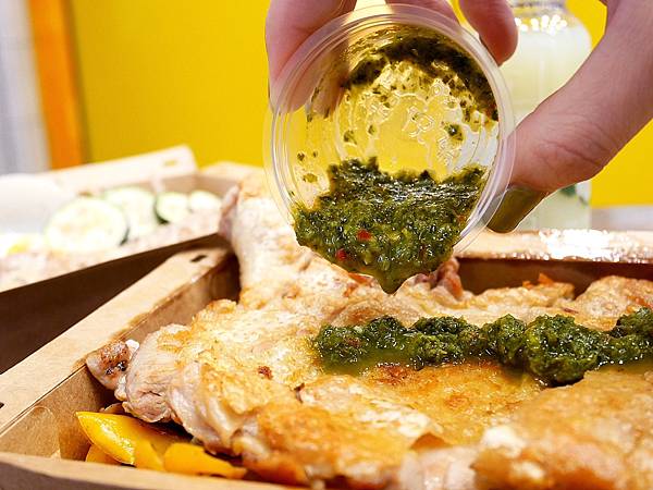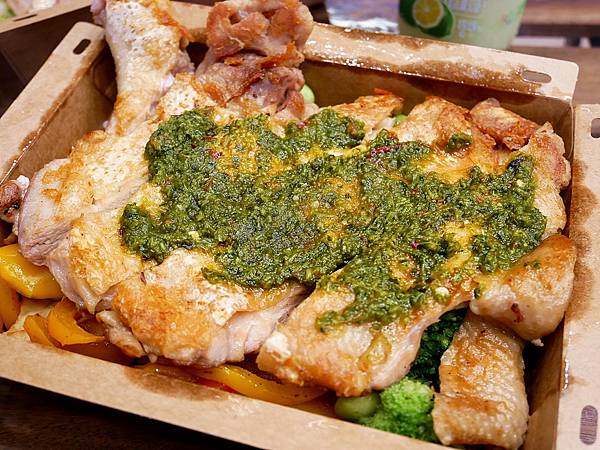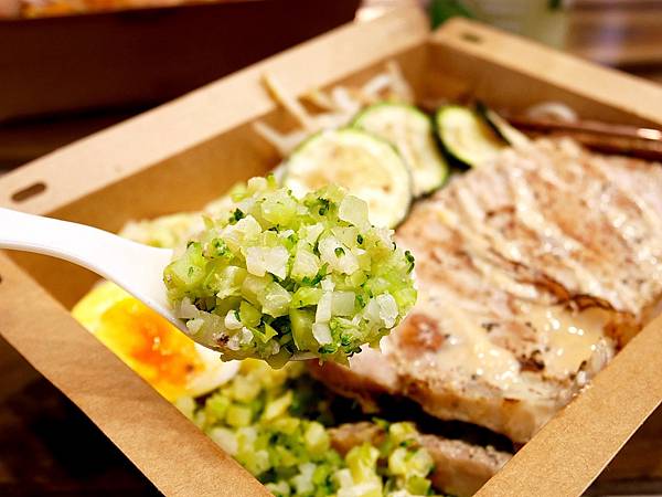 每份餐盒都能選擇一款醬汁,可以請老闆直接把醬汁淋上去或另外包裝。當天吃到的芝麻醬和泰式酸辣都很讚耶,老闆說醬汁是他們自己做的,非市售口味很值得品嘗~