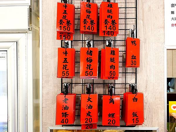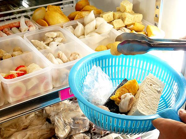 櫃檯旁的冰箱置放了豐富食材,低溫保存更能維持品質。食材由顧客自行夾取,所有品項底下都有清楚價格。有些火鍋料或食材可以任意搭配,3個或4個$20相當平價~