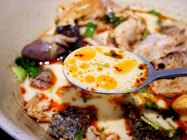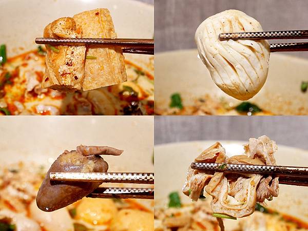 牛肚雖不像丟進麻辣湯內有滿滿辣油可以吸,但搭配香麻牛奶湯的牛肚也很讚,口感新鮮沒有內臟腥味,QQ的我好愛。雞胗不小塊而且口感脆,雖然筋的部分稍稍偏硬但沒有肉臟腥味蠻好吃。鴨腸脆脆的又不含沙,吸飽湯汁超加分,這個一定要點。牛筋不小塊而且口感軟Q不爛很好吃。