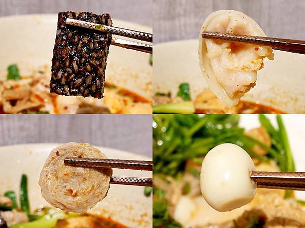 米血糕米血口感還不賴,剛上桌Q彈多泡一下軟糯不會太爛,入味好吃。貢丸/香菇貢丸/芋頭貢丸貢丸的口感不錯,透過辣湯的襯托甜味特別高,香菇的則多了陣陣香菇味蠻不錯,而芋頭丸子中間的芋頭塊細緻綿密好吃。鳥蛋鳥蛋沒有很入味,但口感細緻好吃。