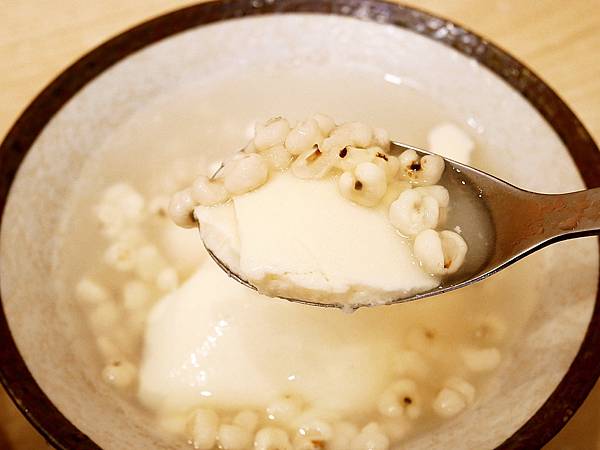 薏仁口味的豆花不是搭配糖水而是薏仁水,薏仁水甜度剛好不膩口,顆粒飽滿不會太爛蠻好吃,豆花多了陣陣薏仁香氣很加分。