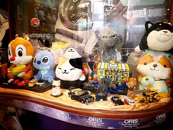 店面的櫥窗裡擺滿各種娃娃和公仔,也有手錶展示櫃,都不知道究竟是主打乾拌麵還是手錶了XD