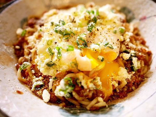 上頭還搭配一顆半熟蛋,劃開之後金色的蛋黃緩緩流下來,混著起司拌均勻享用濕潤好入口。