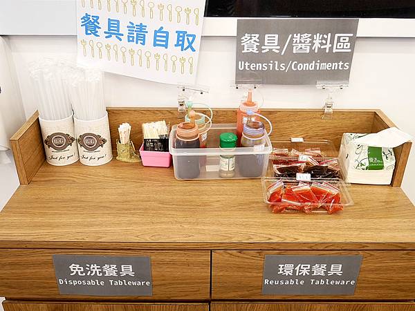 餐後別忘了把使用後的容器、托盤和垃圾放置到回收區喔~