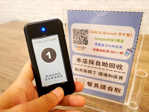 點餐後會拿到一個感應器,等感應器震動就可以到櫃檯取餐,跟百貨公司蠻像的。