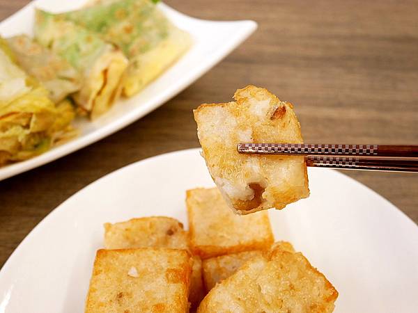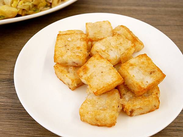 蘿蔔糕吃起來是用炸的但不會太油膩,表面很酥脆不乾口,偏港式蘿蔔糕的香氣但沒那麼重口味,搭配油膏會更好吃。