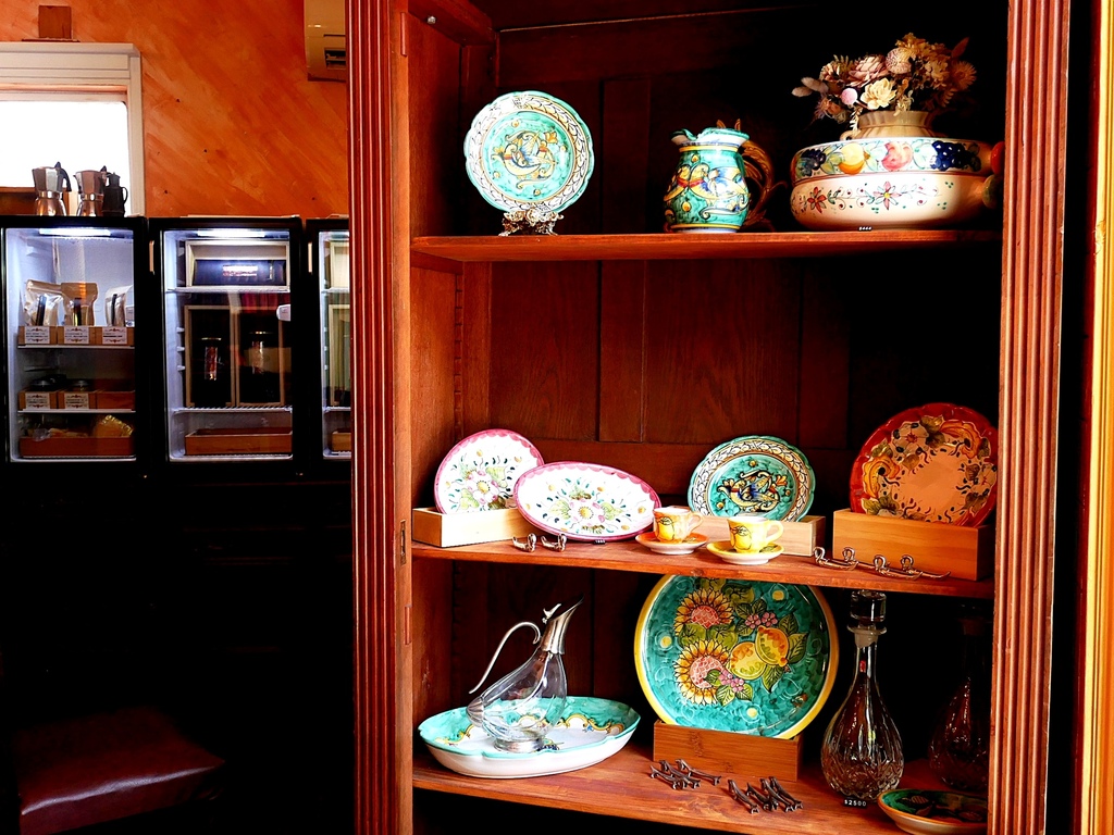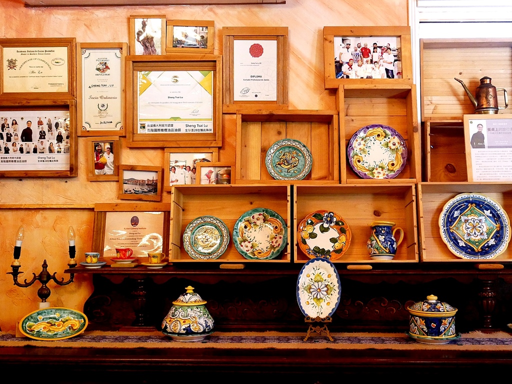 除了「食物」,店內擺放各式瓷盤、瓷器,都是老闆到義大利小鎮搬回來。聽說當地是彩繪瓷器的重鎮,幾乎家家戶戶都有這項工藝,老闆特別喜歡充滿溫度的作品,決定把這樣的美好帶回台灣分享給來用餐的大家。