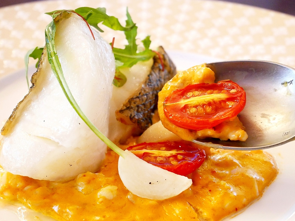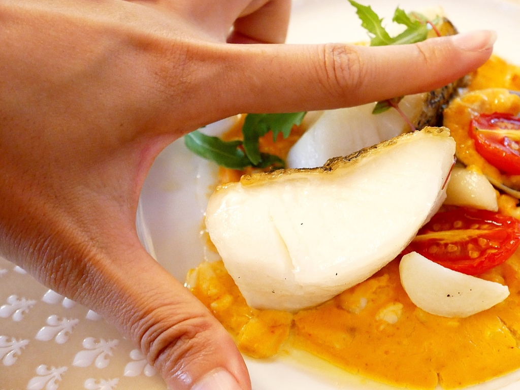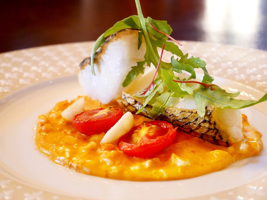 這道充滿濃濃海味,以龍蝦和白蝦熬煮而成的濃郁醬汁,再舖上滿滿蝦肉,光是醬汁就很讓人驚喜。搭配肉質Q彈細緻且絲毫沒有腥味的厚切魚塊,豐富海味讓人念念不忘,這道我自己很喜歡~