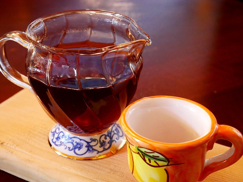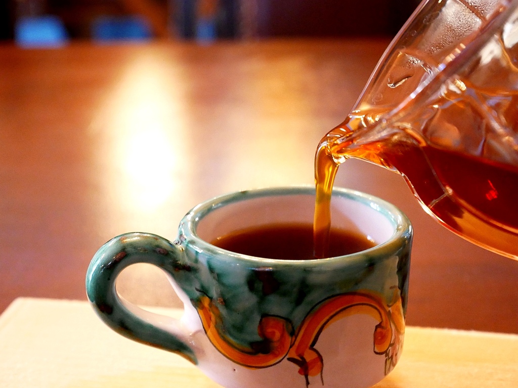 主餐結束後還有飲品跟甜點,老闆詢問我們的喜好後,提供兩款手沖咖啡。兩支豆子的風味都很讓人驚喜,特別是喜歡果香的朋友肯定會喜歡。一款有著如Hi-Chew葡萄軟糖的甜香味,另一個是百香果混搭水蜜桃的味道。
