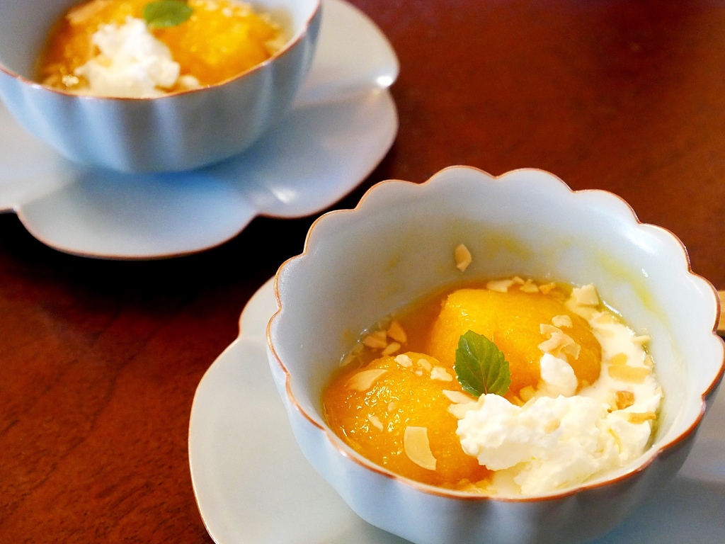 這道點心是義大利傳統甜點,以夏季最正時的香甜芒果取代檸檬製成果泥,再搭配手工酸奶和杏仁片,酸奶輕盈酸香好適合夏天的午後。