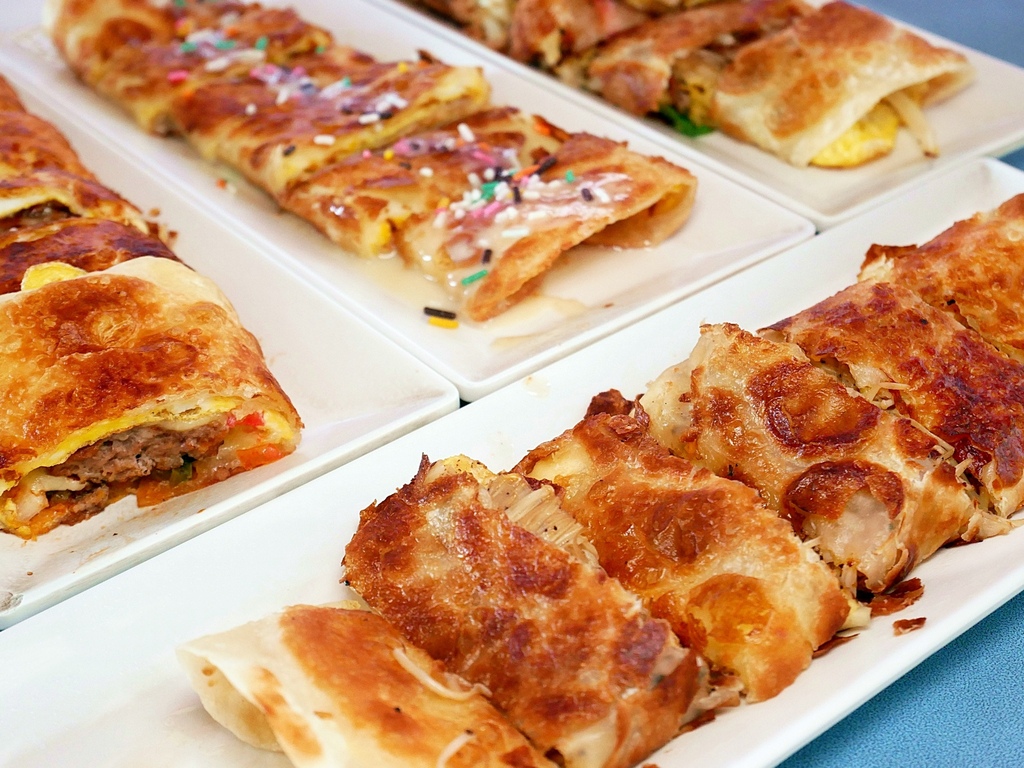 喜歡厚切牛肉或重口的朋友不妨試試這款,以特製莎莎醬搭配厚切手打牛肉的內餡超有料,肉不會乾而醬汁濕潤夠味,酸香還帶有陣陣辣度的調味很過癮,直覺聯想到披薩或是美式漢堡,沒想到包在蛋餅裡面也好對味。