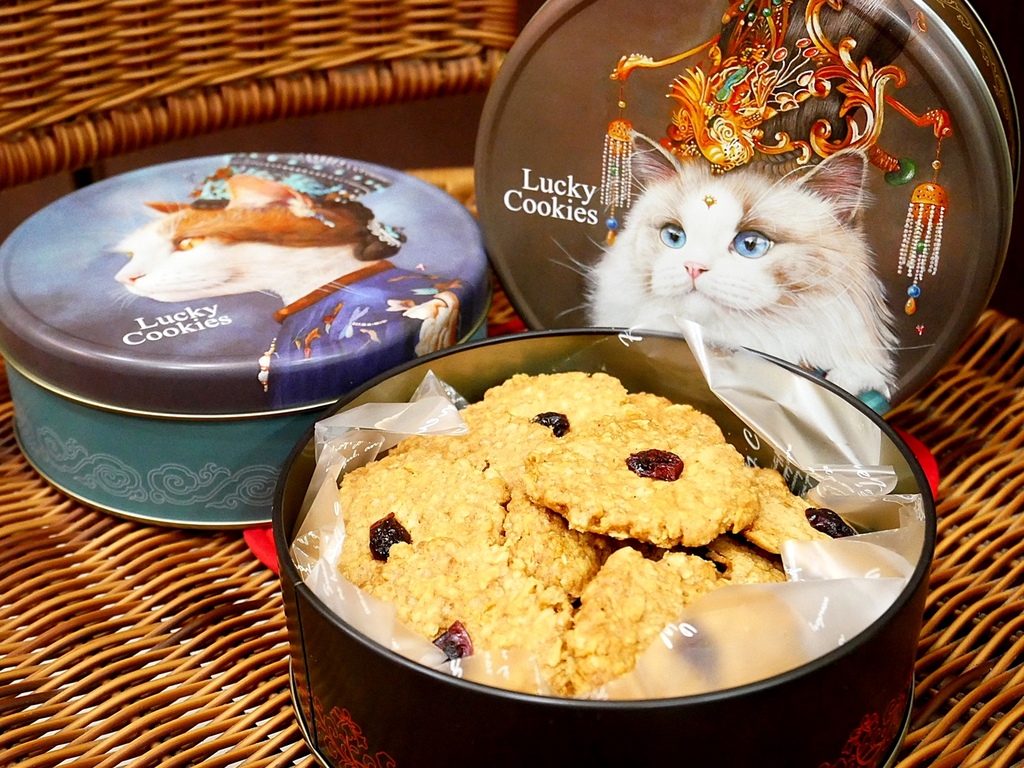 台中的伴手禮超多,除了經典太陽餅,後起的曲奇餅、蝴蝶酥、蛋捲也都擁有高人氣。東興路的「幸福一路燕麥酥」是這兩年竄起的新選擇,純手工燕麥酥能吃到滿滿燕麥和杏仁片,酥脆口感不甜膩相當耐吃,讓人想一塊接一塊。除了燕麥酥涮嘴,鐵盒也是不少人入手的原因之一,與寵物畫大師推出的聯名款超好看,以古風裝扮的宮廷貓亮相,三款一次蒐集還有折扣更划算。哪邊買 : 點我