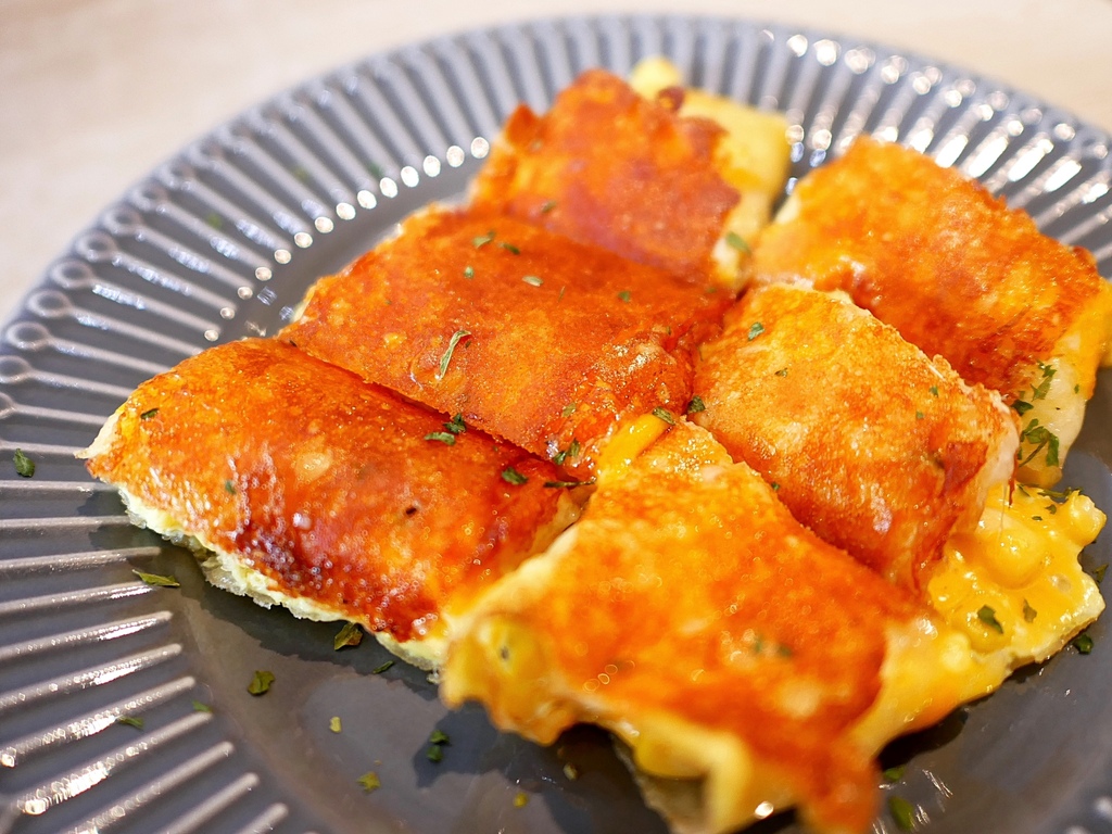 玉米起司的組合靜香從小就好愛,但呷島的玉米起司吃起來不算濕潤,好險調味還不錯鹹香不重口。如果餅皮再酥一點,且蛋餅中間能略加點醬汁增添濕潤度肯定很棒。