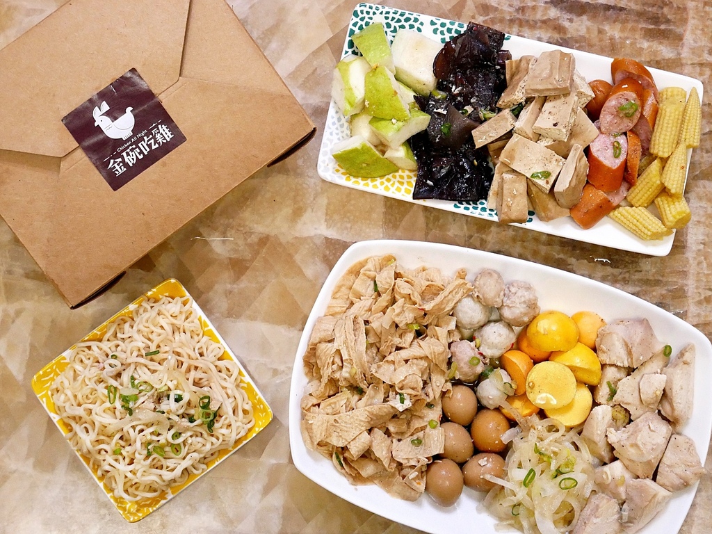 「金碗吃雞」的食材種類豐富,為了新鮮每天定量準備,賣完就沒了~ 到店外帶只要消費滿百就送洋蔥或水果,水果種類不固定,以當季品項為主。不愛一般鹹水雞肉那種紮實口感的朋友,可以試試剛推出的舒肥雞胸,軟嫩細緻的雞肉連牙口不好的人都能盡情品嘗。鹹水雞的口味相當客製化,鹹度、辣度都可控。