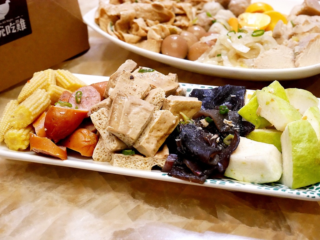 靜香點舒肥雞胸搭配10種配菜,竟然裝了滿滿兩大盤,其中豆皮、豆干、德腸、雞蛋黃份量都不少,食量大的朋友這幾項可以多點,也別忘了來份王子麵,飽足感up。