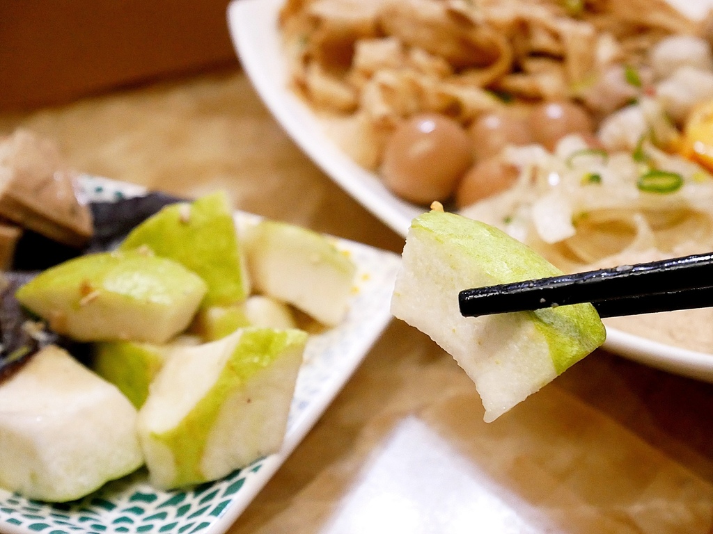 滿百贈送的水果當天是芭樂,芭樂脆口又不會太硬,清甜滋味搭配微鹹辣的湯汁相當有層次好加分。