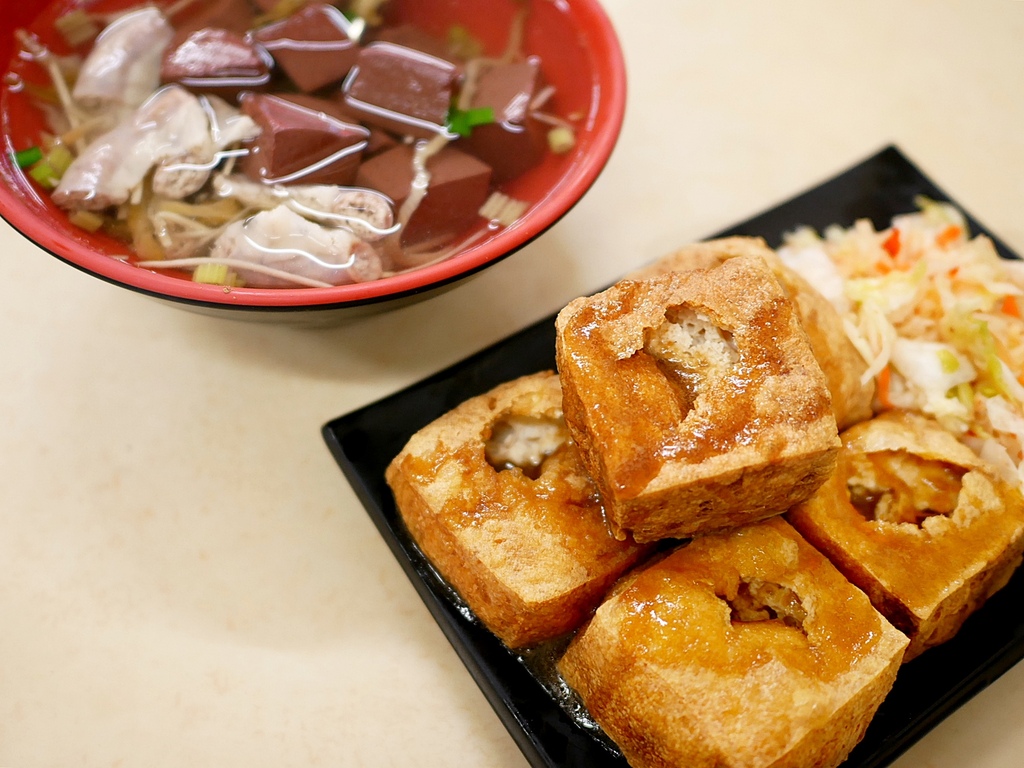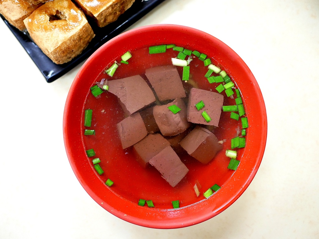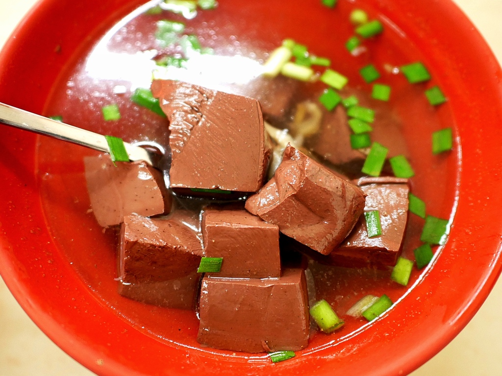 湯內的豬血給不少,口感細緻不粗糙,湯頭清爽不油膩,搭配一大把韭菜香氣還不錯,相當耐喝。