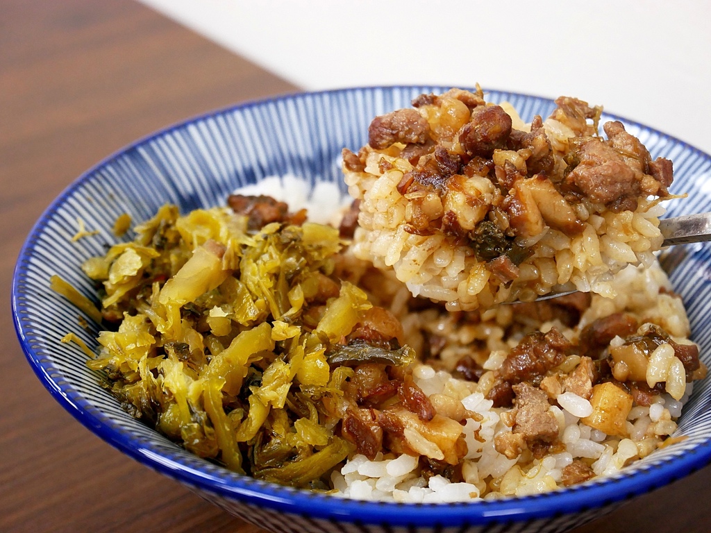 魯肉飯的肉肥瘦各半,不油膩的滷汁鹹香夠味,雖不重口但香氣還不錯,米飯拌著魯肉再夾些脆口酸菜味道很棒。