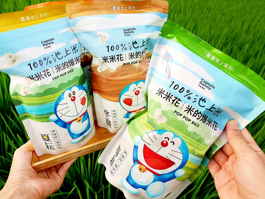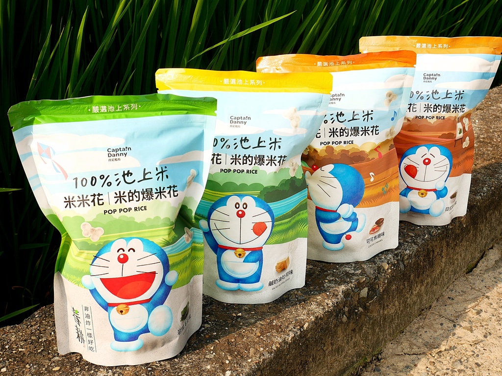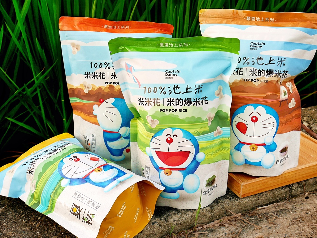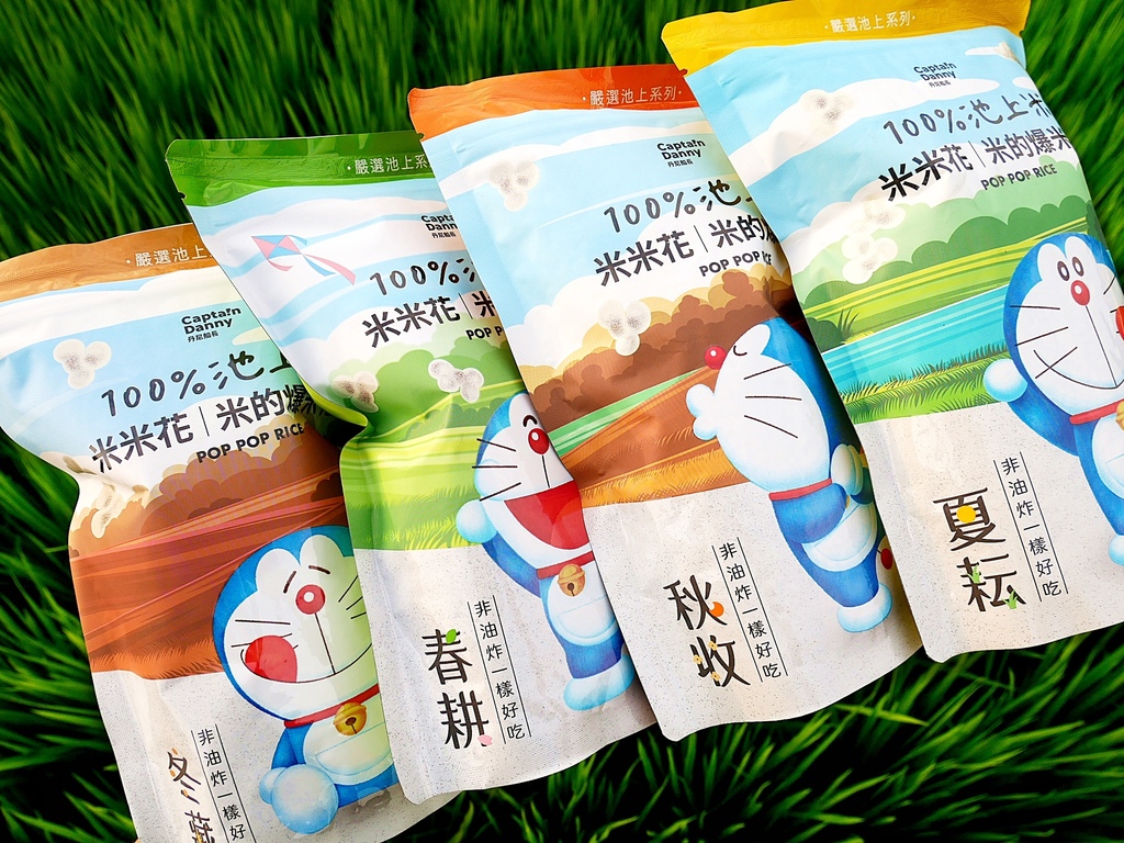 近期推出的「哆啦A夢收藏款」一共有四種口味,全都是「池上米系列」。主打以100%新鮮池上米磨粉製成,不用跑台東就能品嘗。