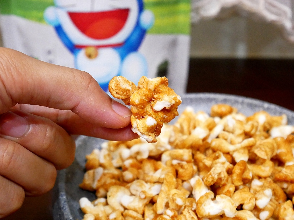 說到海苔口味的點心,直覺就是撒上滿滿海苔碎,但這款米米花沒有點點海苔,但又能品嘗到淡淡海苔香氣,不沾手更方便享用。